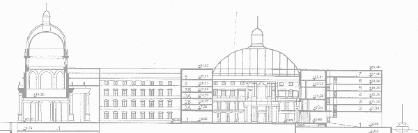 Staatliche Museen mit Ausstellungssälen, Archiven, Zentren, Studiensälen, Bibliothek, Konferenzsälen, Kunsthalle, historischen Räumen Fassaden, Portalen und Kuppelbauwerk Hauptportal, Schlüterhofüberdachung, Bistros, Restaurants, Auditorium, usw.
